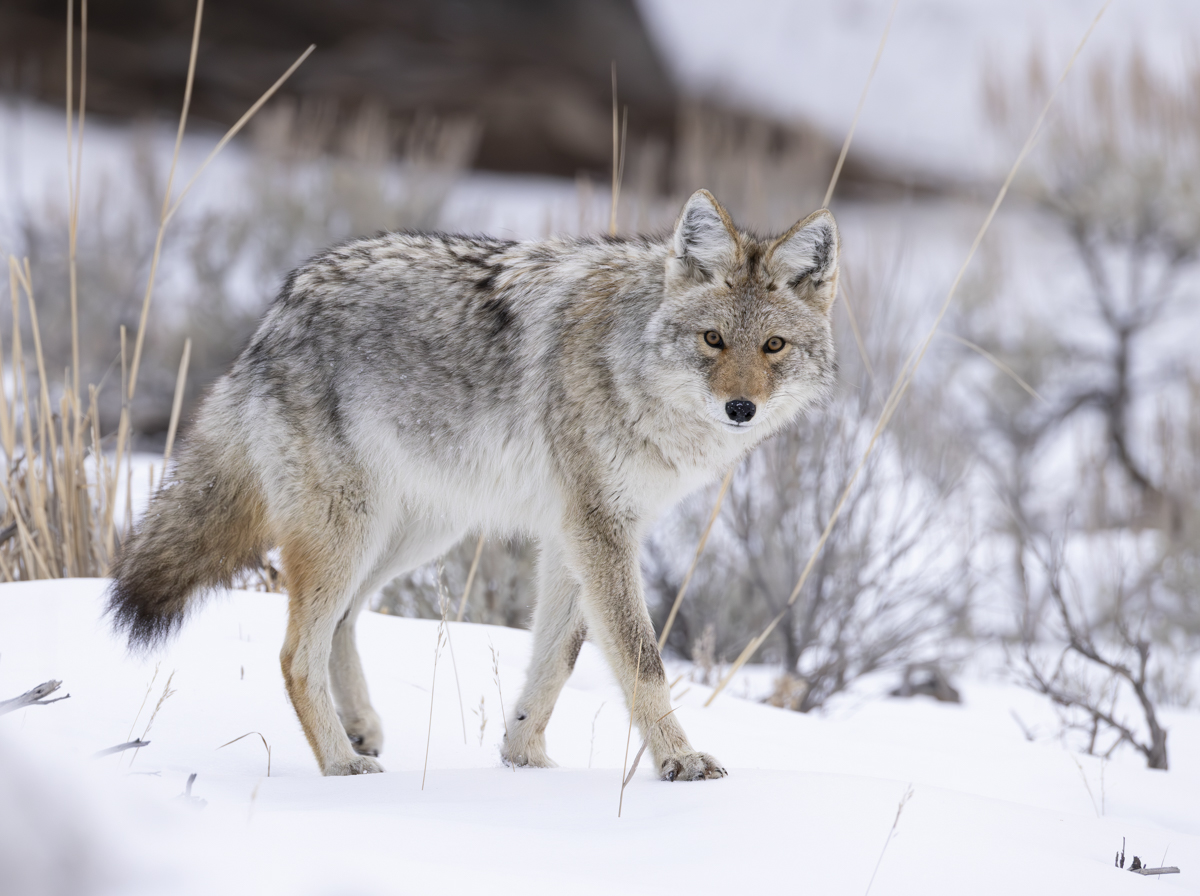 About that time a car drove up and a couple of people got out. The coyote looked our way and trotted off. I headed home after enjoying some time with a couple of Yellowstone canids. Watching them do their thing is a great way to spend a Sunday afternoon.