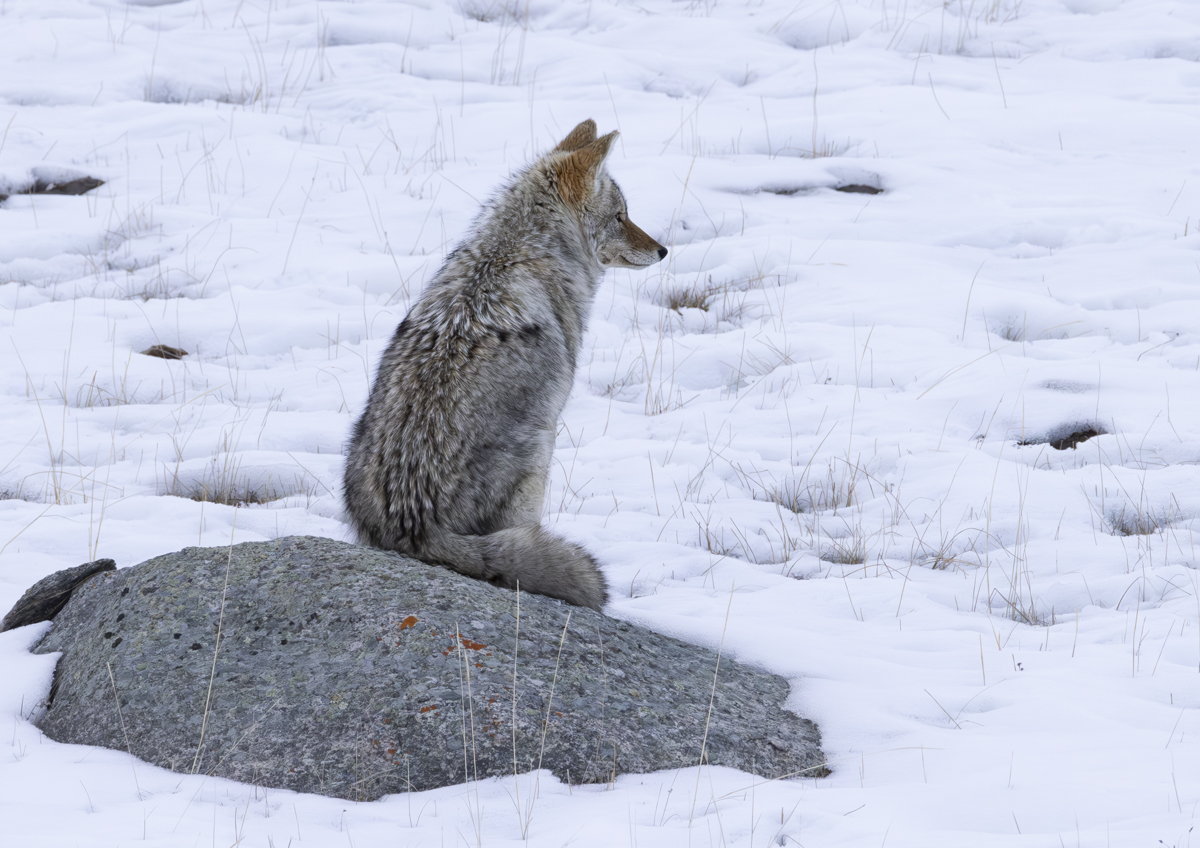The coyote surveying its domain from a boulder throne