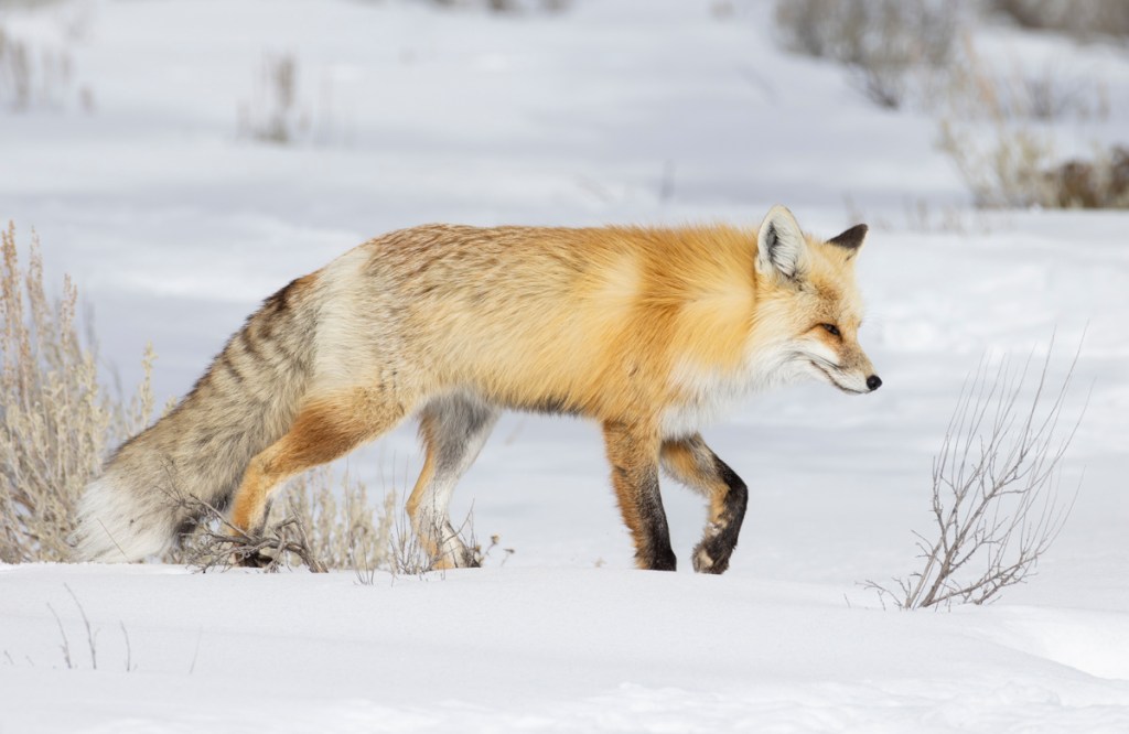 I normally don’t like to spend time watching wildlife with a crowd but the fox was so beautiful in the snow I decided to just stand next to the car and watch him for a bit. Once he got away from the picnic tables he was acting more like a fox should and was offering some nice opportunities for photos.