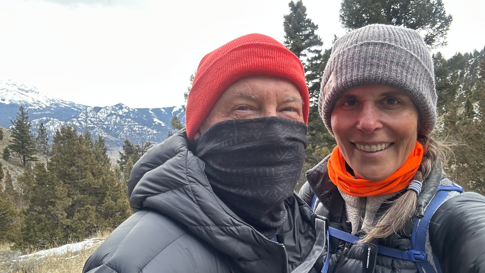 A couple days ago, Mike and I went for a hike in Custer-Gallatin National Forest not far from our house. The trail followed a small creek up a ravine dotted with large Douglas fir trees and limber pines. We were excited to see three species of deciduous trees as well: quaking aspen, Rocky Mountain maple, and alder. Most of the trail was snow-free, as this has been a mild and warm winter. However, the day of our hike was cold and windy, so at least the trial was frozen rather than muddy!