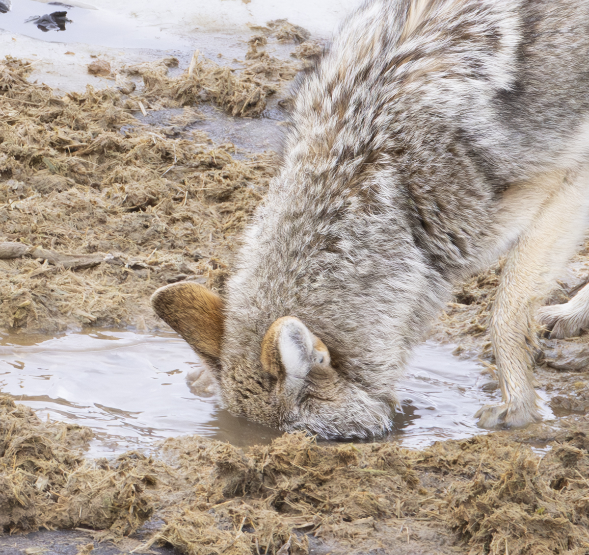–The coyote doing a head dunk to pull up some lunch