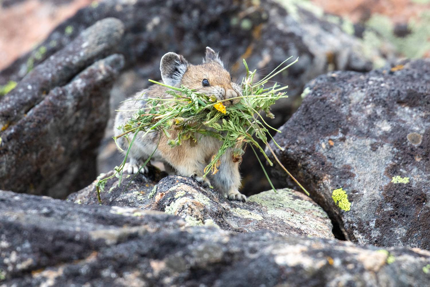 Over the summer, the cameras captured many of the usual suspects over and over – mountain cottontails, various birds in the garden or at the very small water hole we created, our local cow elk browsing on the shrubs on the side of the house without the electric fence, mice, and lots of wood rats. The cameras at the base of the cliff have produced some good footage but are a pain since the wind that blows almost constantly here (especially during the day) causes the vegetation to move which triggers the cameras. I have to check them (now only one) every few days and even then, I often have a few hundred video clips to scroll through.