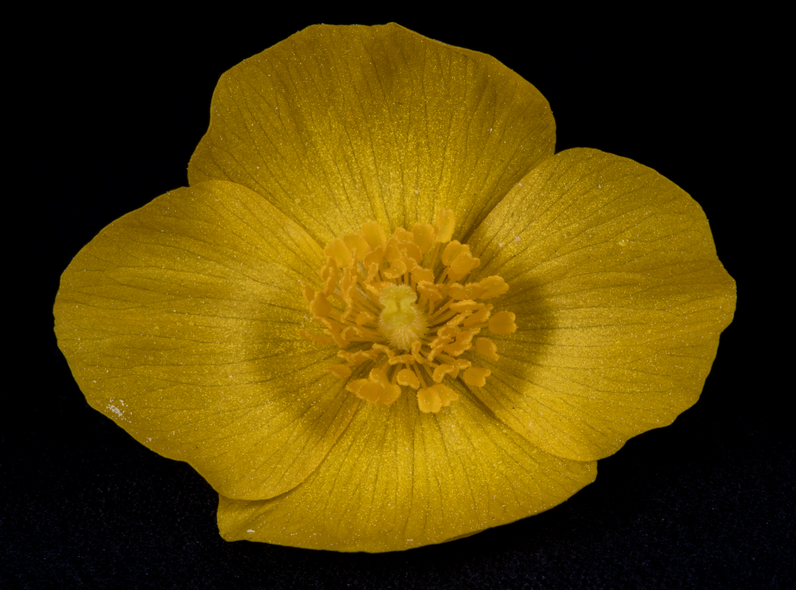I removed two petals and about half the stamens so that you can better see the structure of the wood poppy flower. Notice the lack of sepals underneath the petals.