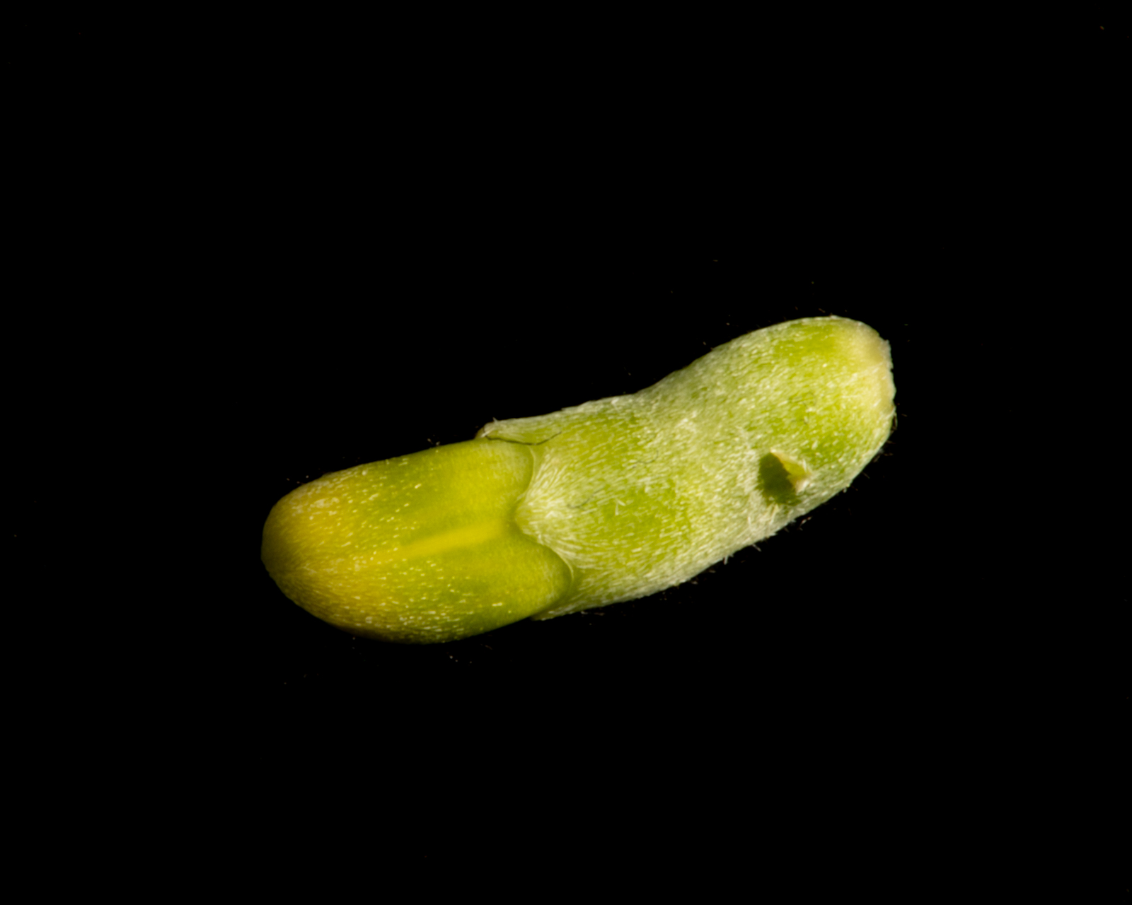 The tiny first instar larva of a Falcate Orangetip butterfly.