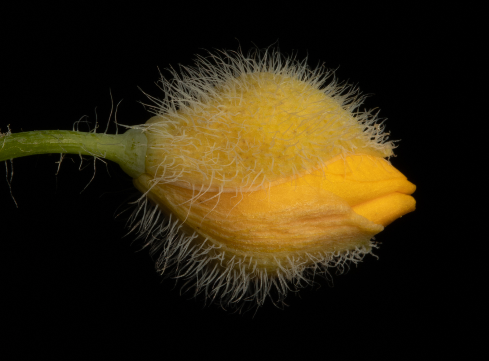 Notice the two hairy sepals surrounding the unopened yellow flower.