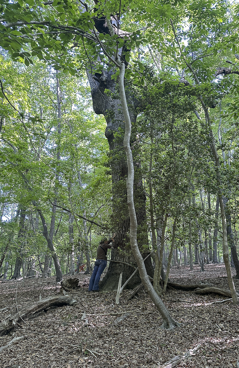 Melissa admiring the huge white oak on our south slope (click photos to enlarge)