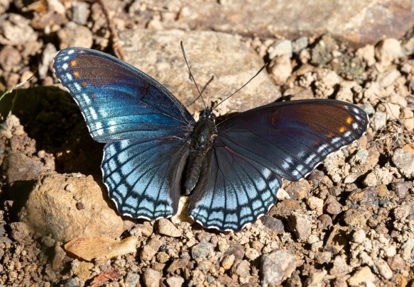 At one spot along the now dry creek, Melissa saw the bright blue flash of a red-spotted purple butterfly, the first one of the season for us. It was sitting in a sunny spot on the creek bottom slowly opening and closing its wings to soak up the warmth. You can’t help but smile when you see such a brilliant blue.