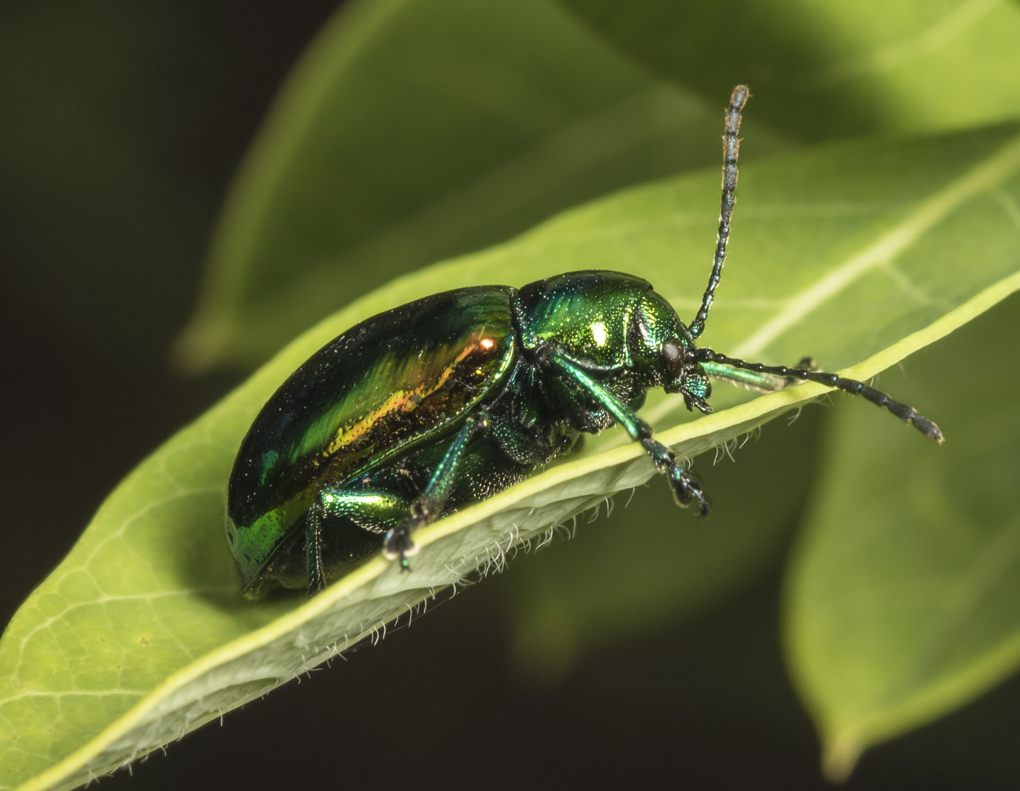 Dogbane leaf beetle, an iridescent beauty