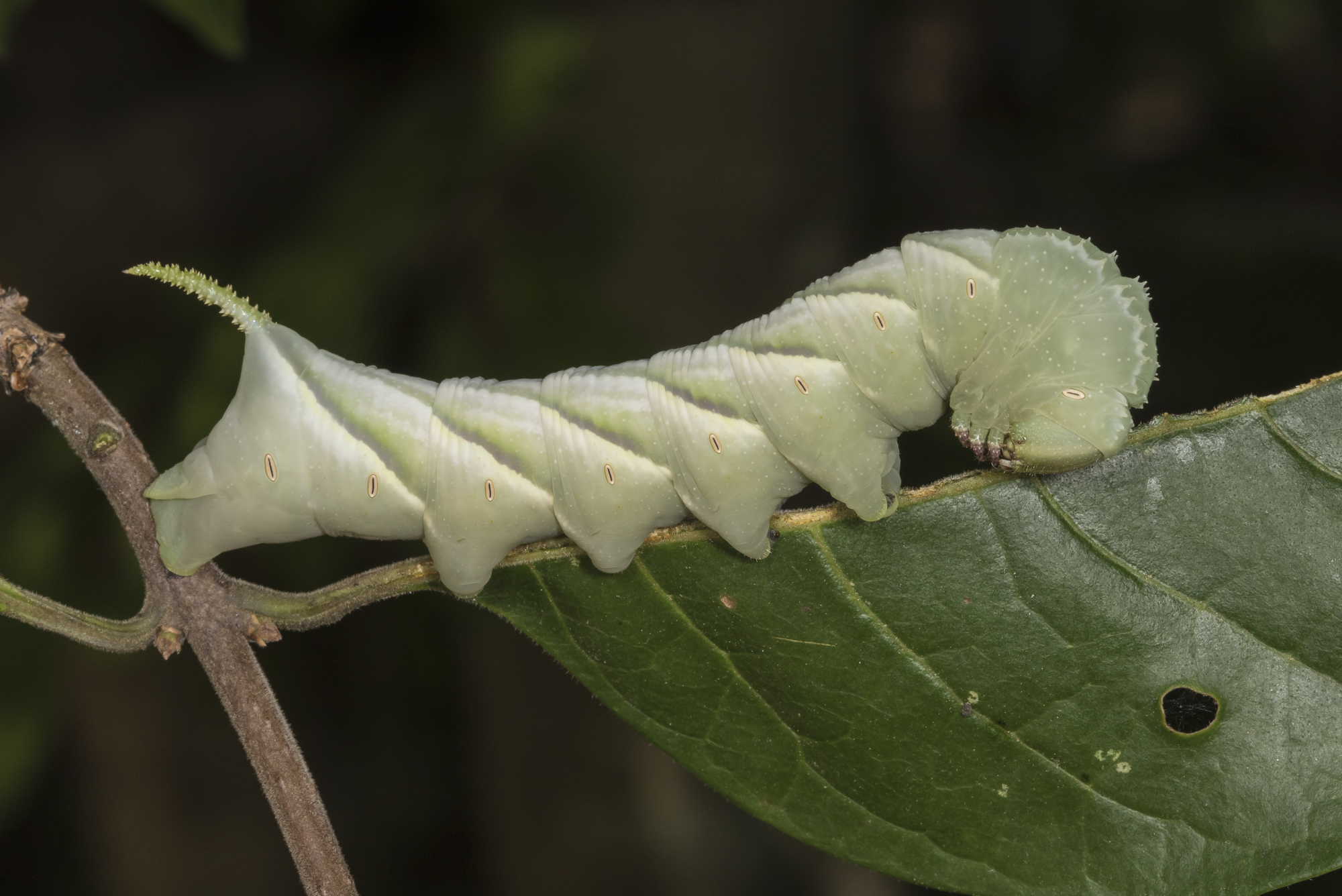 Nessus sphinx larva two days after hatchingSix days later it looks like this…still a long way to goWalnut sphinx moth (Amorpha juglandis)