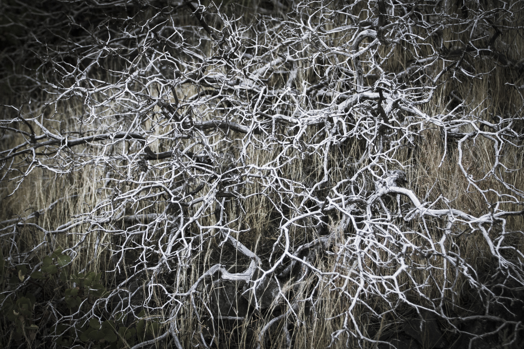 Sugar pine coneGrasses along a dry ridge in Redwood CanyonPatterns of twigs