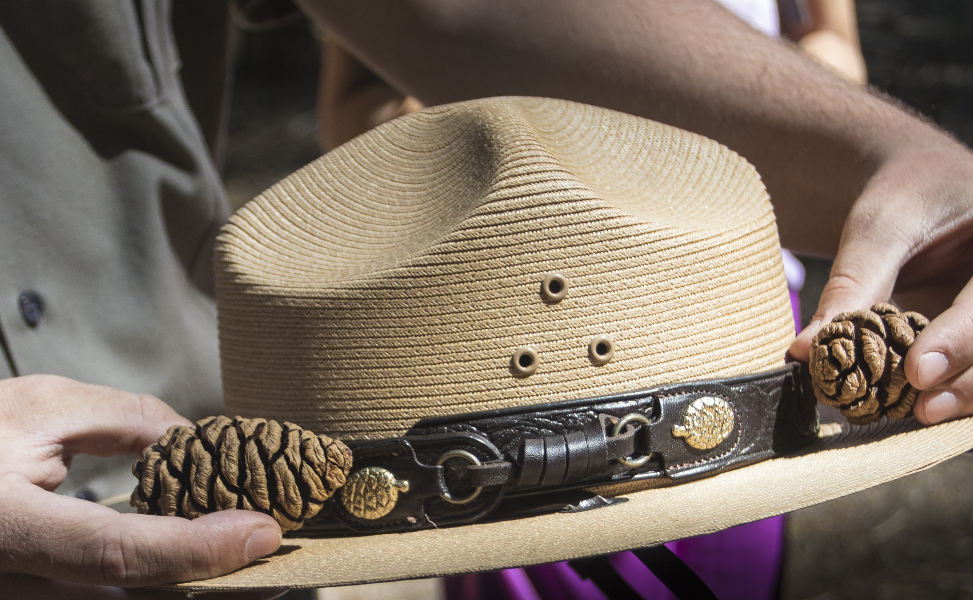 Giant sequoia cones as symbols on National Park Service hat