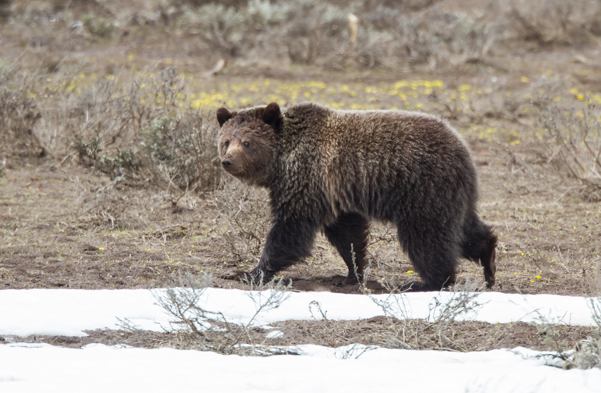 It was in June two years ago, when I was with another group, that we were thrilled by the presence of what is probably one of the most famous wolves in the history of Yellowstone, a wolf known simply as 06. She was then the formidable alpha female of the Lamar Canyon pack, whose territory encompassed much of the prime wildlife habitat of Lamar Valley in the northeastern portion of the park. In December of 2012, she was legally killed by a hunter about 15 miles outside of the park boundary. After the de-listing of Gray Wolves from protection under the Endangered Species Act, states adjacent to the park opened hunting seasons. As with other wildlife, wolves do not recognize park boundaries, and on one of her packs’ forays just outside the boundary, 06 was killed. Another collared male of the pack was also killed that same hunting season. The end result was the disruption of the pack (the alpha male was the father of the remaining pack females and thus he left to start another pack). The current alpha female of the Lamar Canyon pack is the daughter of 06.