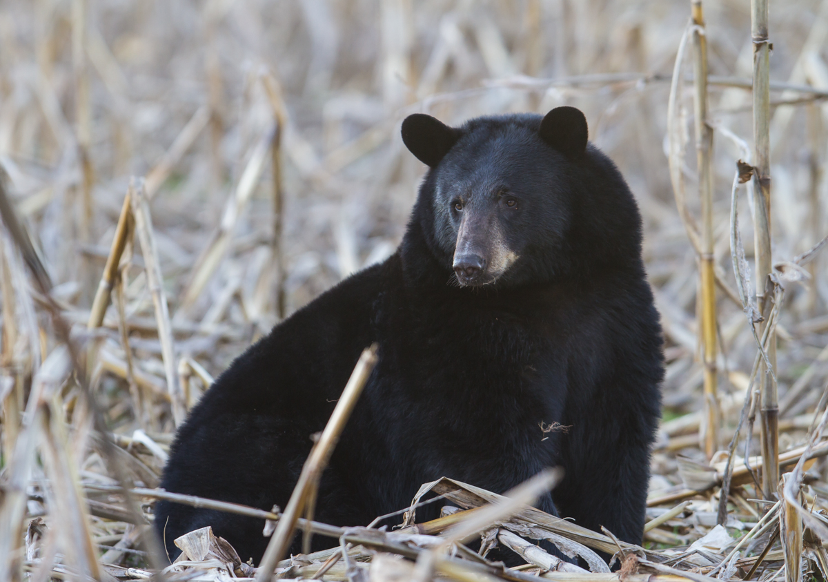 Large Black Bear feeding in corn field