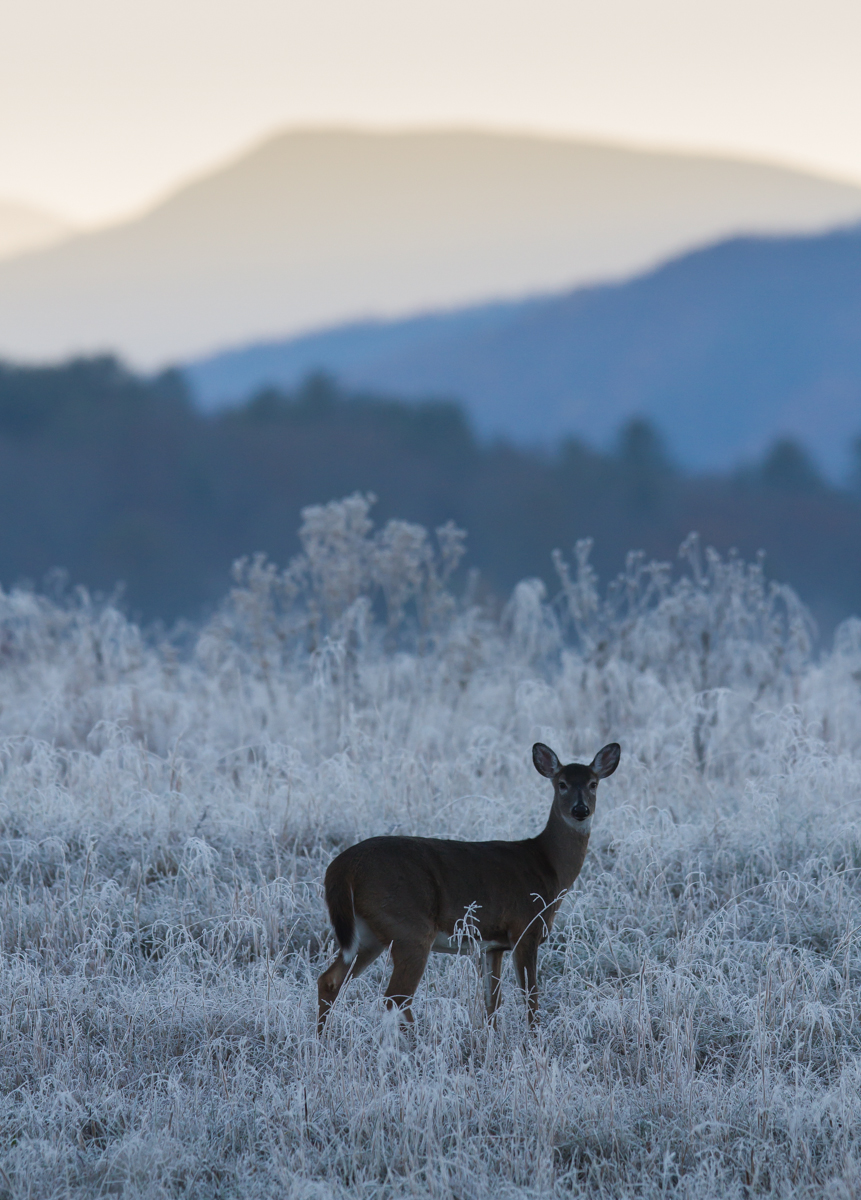 The valley is a beautiful place, especially at sunrise and sunset. There are many short trails, a visitor center, streams, and scenic views. There are also a large number of historic structures from the thriving community that lived in the valley until it became part of the national park in 1934. One reason for its popularity (and the reason for my visit) is its wildlife. Cades Cove is well known for its abundance of species such as White-tailed Deer (especially large bucks), Wild Turkey, and Black Bear. There is easy access provided to the valley via a one way 11-mile loop road. The area offers excellent habitat and relatively easy wildlife viewing with its mix of meadows, managed fields, hardwood forests, and mountain streams.