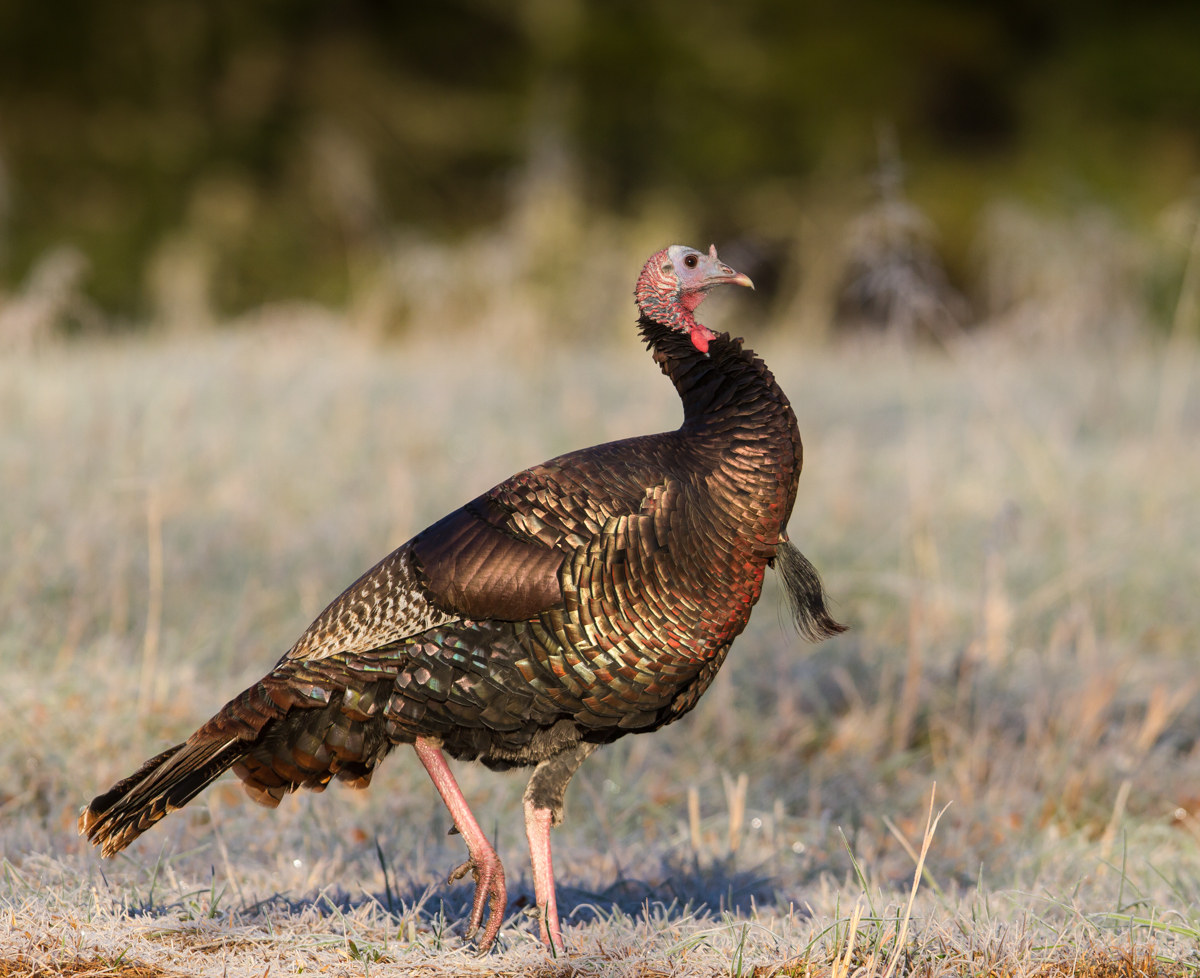 As beautiful as their feathers are, their heads are a bit on the not-so-beautiful side, especially with the close looks I was getting. They continued to peck and feed, glancing my way occasionally to make sure I had not moved from my cold, sitting position in the icy grass. I sat with them for about twenty minutes until a diesel pickup truck stopped nearby and spooked them.