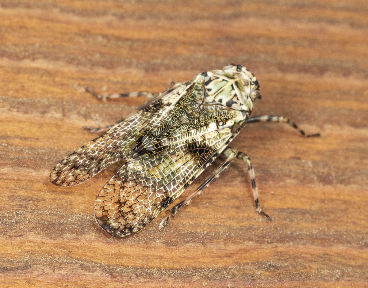 –Calyptoproctus marmoratus, another non-moth – a huge (1 inch long) plant hopper. It looks like a cross between a cicada and a plant hopper. This native species is related to the invasive Spotted Lanternfly.