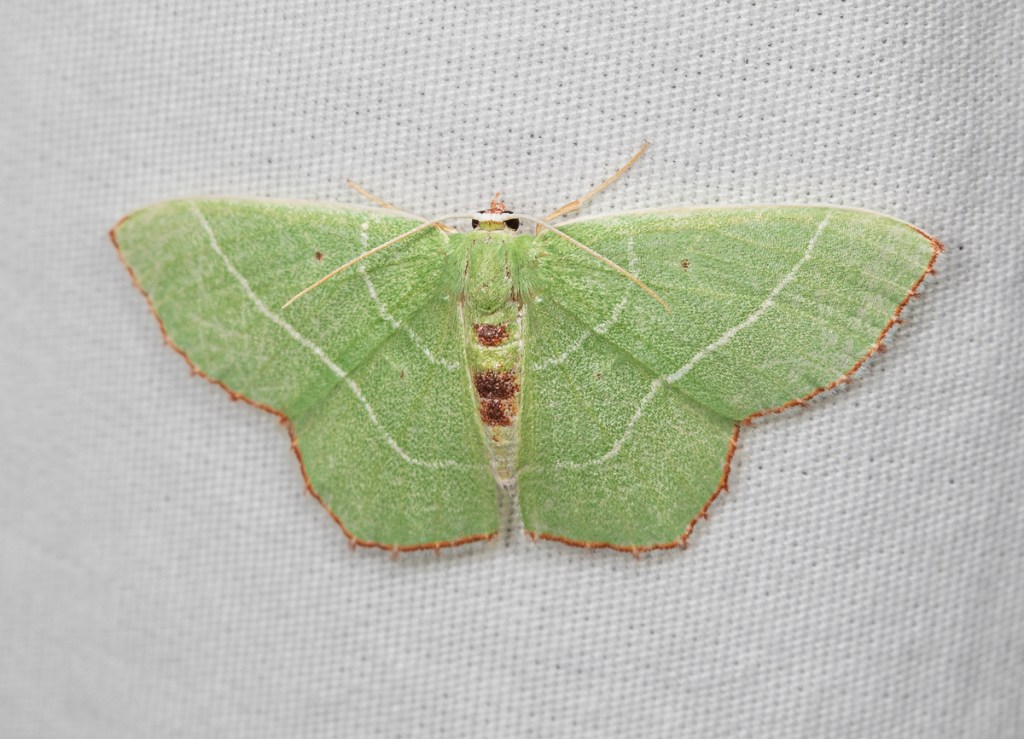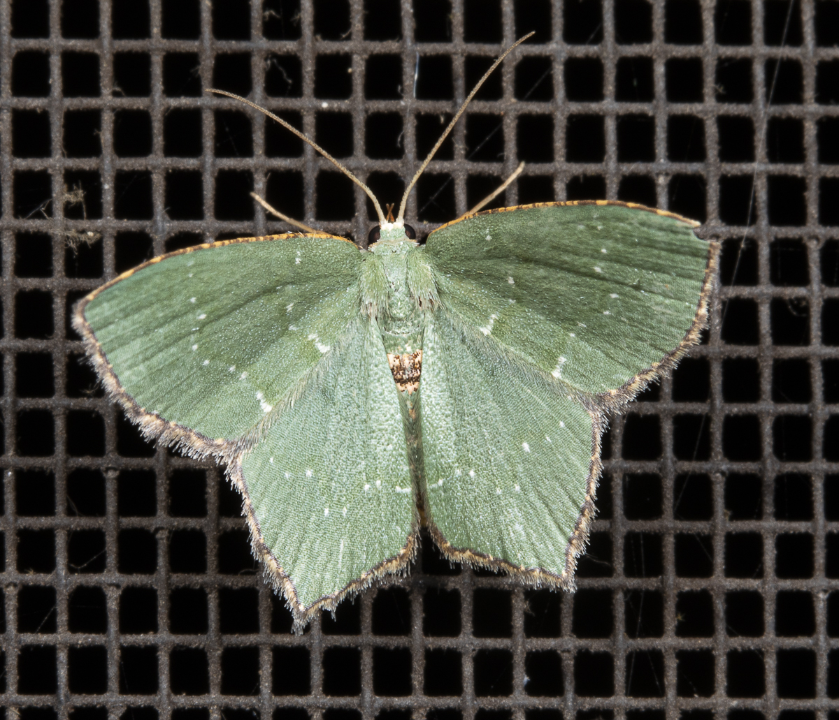 -Red-fringed Emerald. This beautiful little moth has a reddish-brown early spring form and this emerald green summer form.
