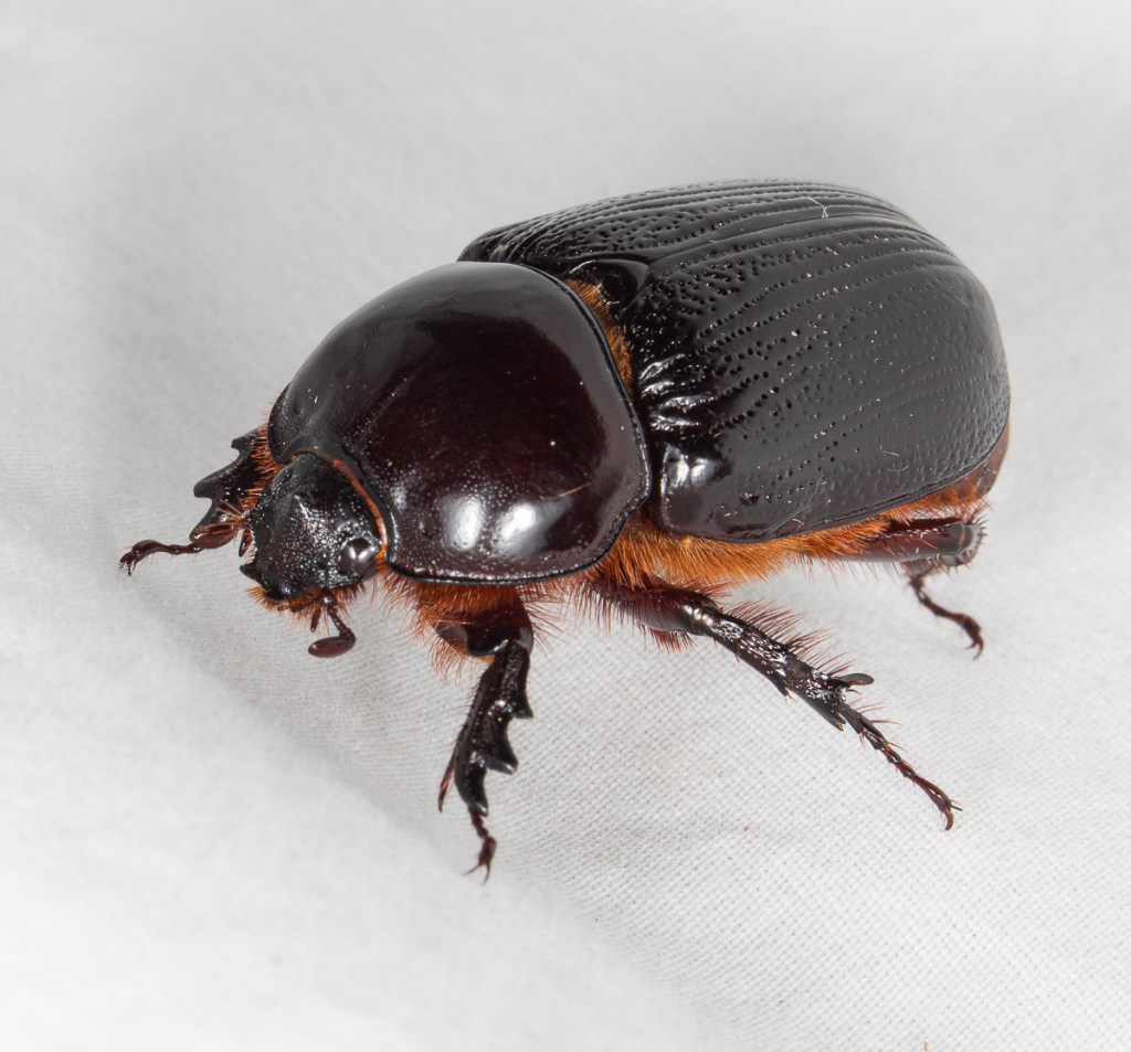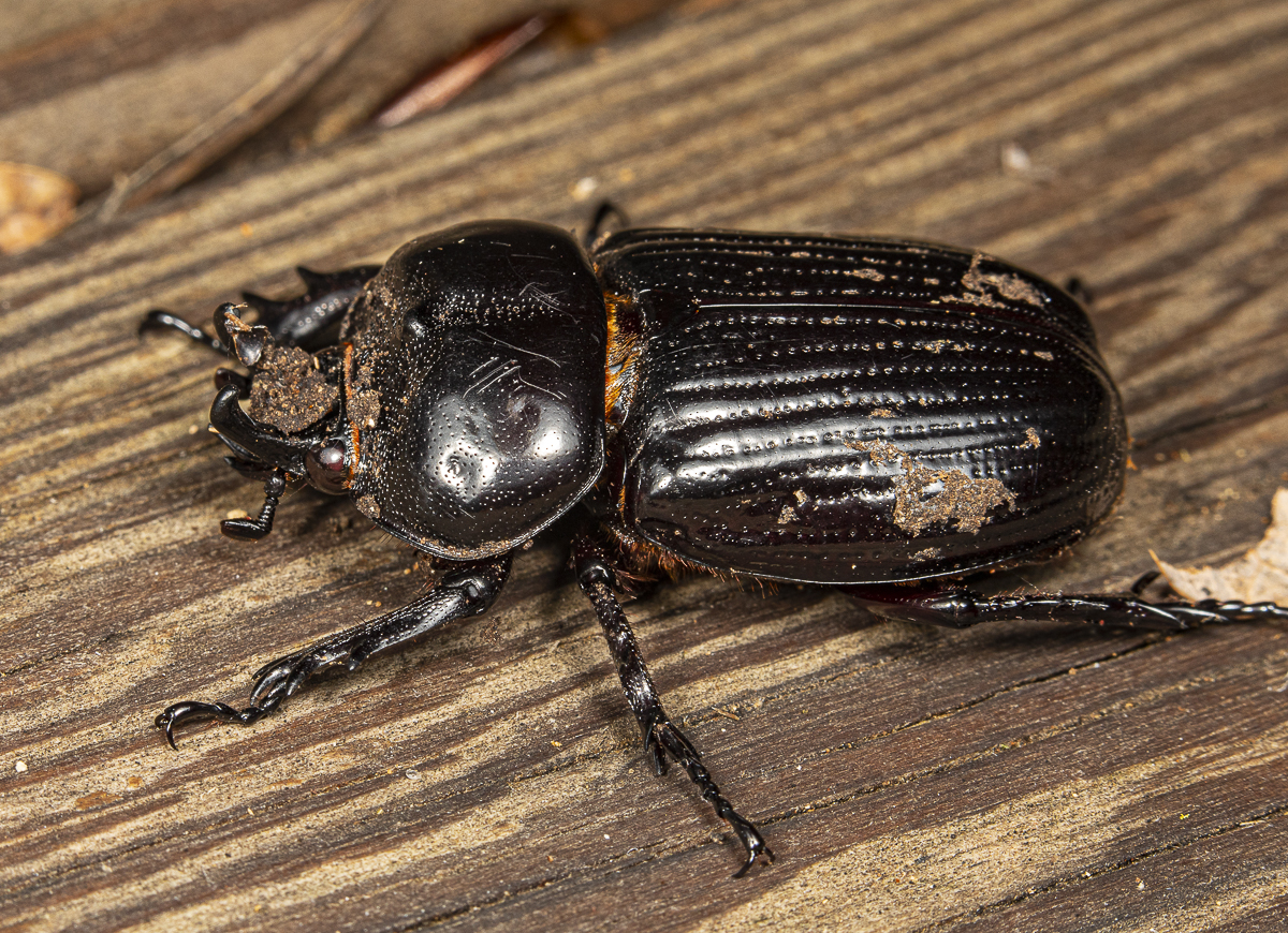 -Eastern Rhinoceros Beetle – Xyloryctes jamaicensis. A large robust beetle. Three females came to the light on one night. They supposedly feed on ash leaves as adults. Larvae feed on the roots of ash trees and on decaying organic matter. Males have a single horn.