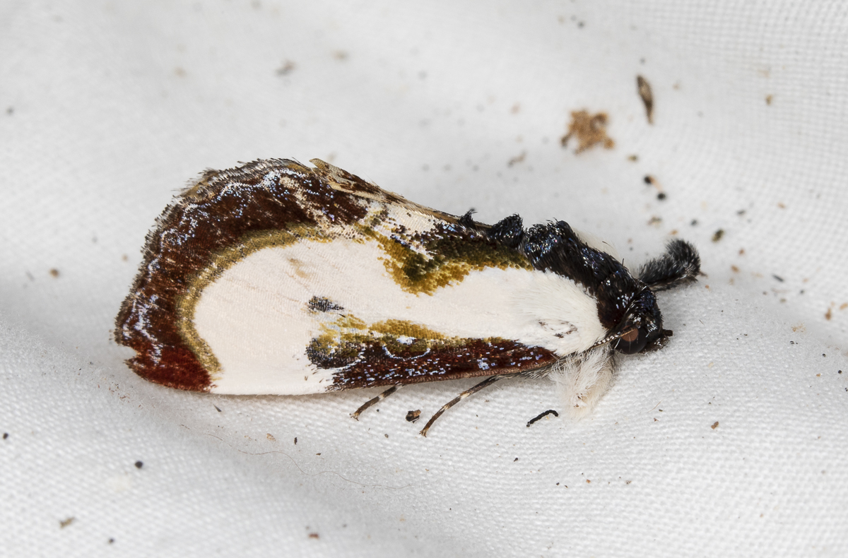 -Genus Antaeotricha – one of the so-called bird-dropping moths. Makes it easy to hide in plain sight. Consider this strategy when venturing in tough neighborhoods. Larvae on oaks.
