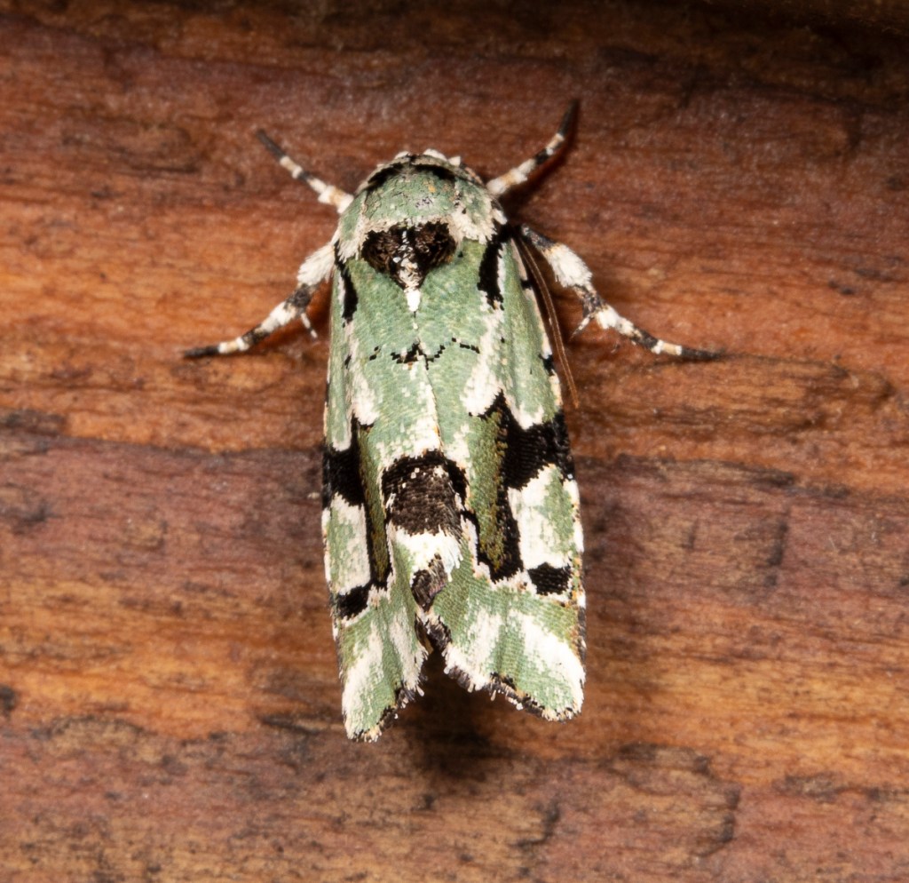 -White-blotched Prominent – nice greenish cast (and the accessory works with this outfit). Larvae feed on oaks.