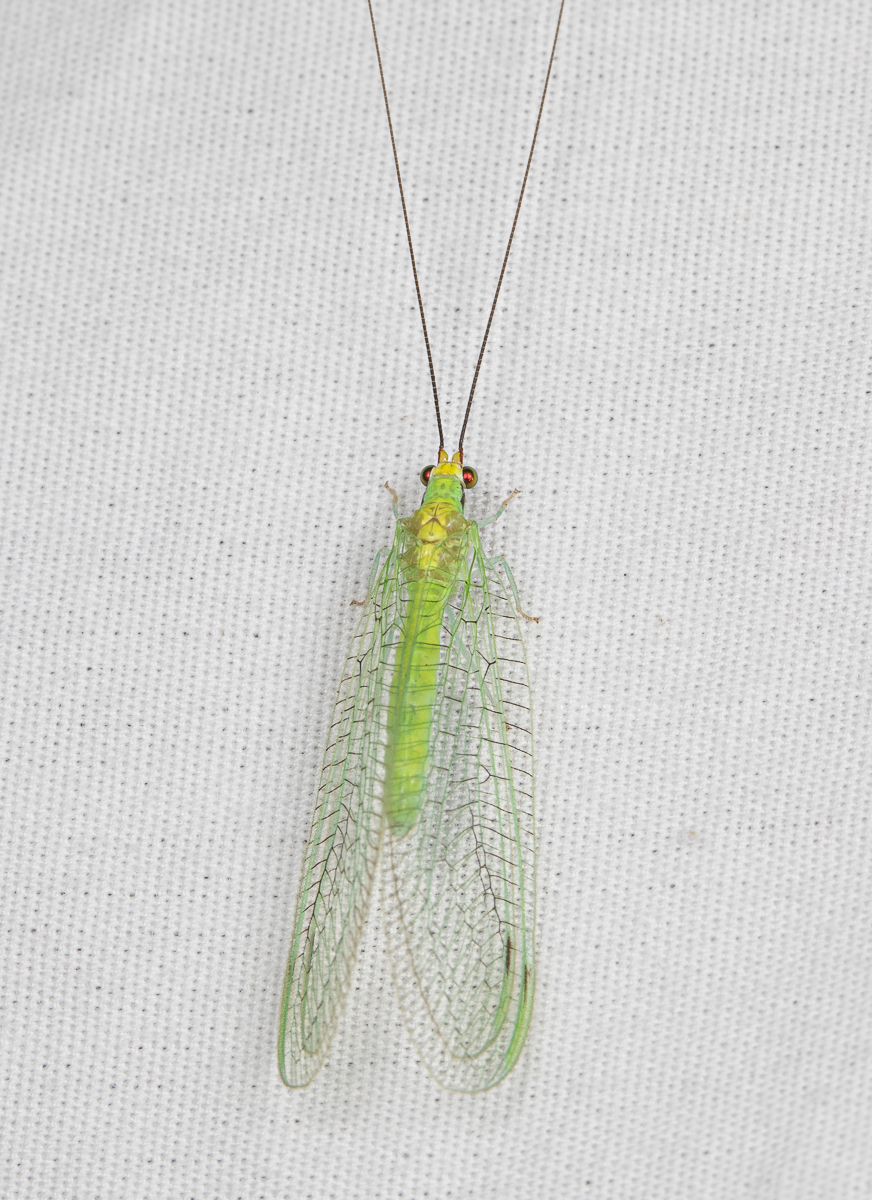 -Beaded Lacewing. Okay, a lot of non-moths are attracted to the lights. If I got this ID correct, this critter is related to antlions and other Neuropterans. The larvae supposedly eat termites. And one reference I saw says the larvae (not sure if this is the case with this species) of this group approaches a termite and releases a toxic vapor from its rear end that immobilizes the termite so it can then be eaten. The article said the larvae basically “farts their prey to death”!
