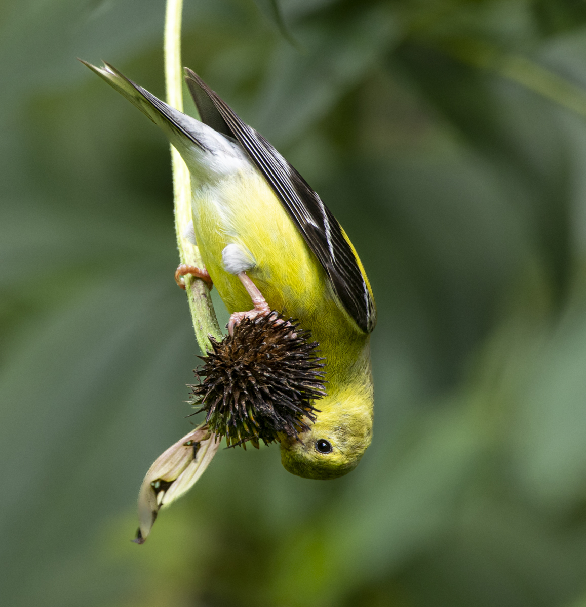 – American Goldfinches are almost exclusively seed eaters. They are one of our latest nesting songbirds with nesting activity usually starting as late as July or even August in our area