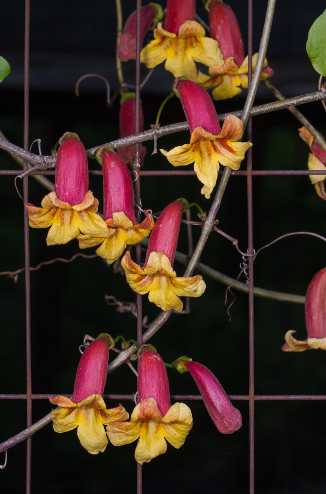 This species is primarily a red-flowered one, which, when combined with the foul odor, mimics decaying flesh which attracts the pollinators. Less commonly they have white flowers, and even rarer still, are yellow-flowered plants. The petals on all varieties tend to turn pinkish with age. The flowers of this species nod toward the ground making them somewhat less noticeable, although the distinctive leaves quickly draw your attention.