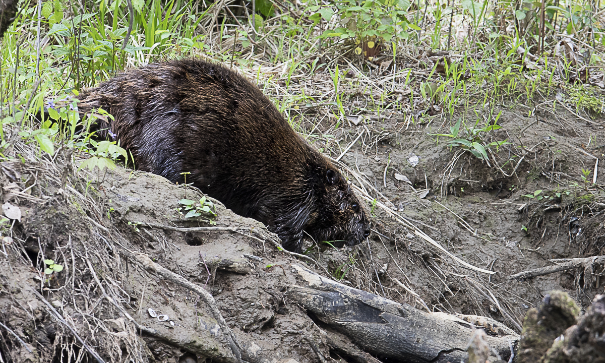 -Then I noticed something with my binoculars down below the perched owl, right along the river. At first, I thought it was an owl chick, maybe a dead one. Click on the photo and see what you think…(my thoughts below)