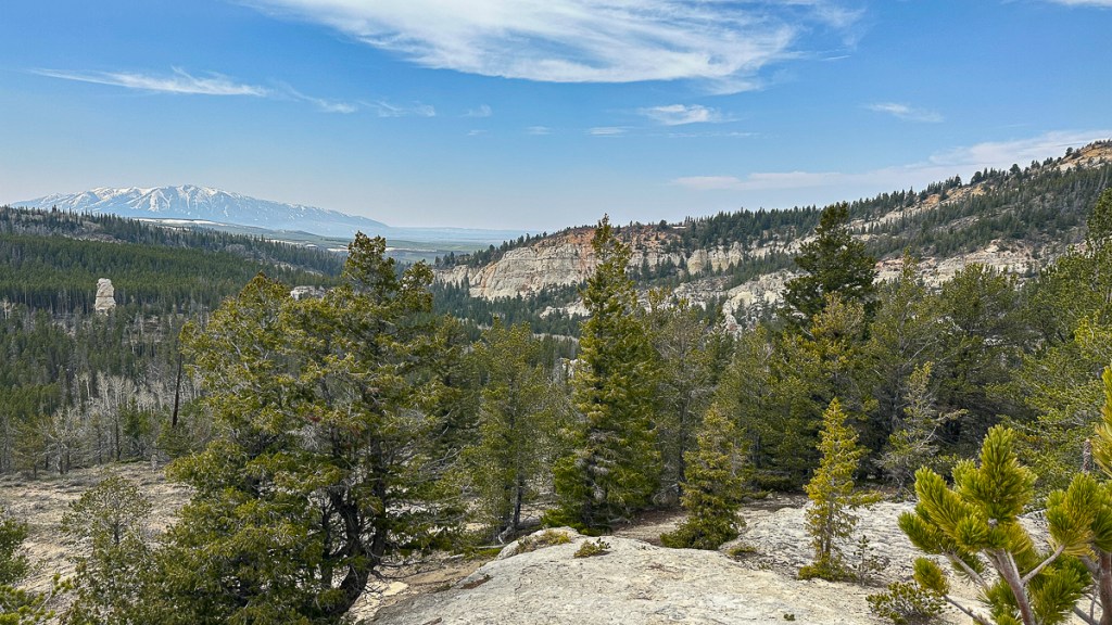 -Melissa worked her magic again and found a forest service road with multiple options for scenic camping. We finally picked a site just off the road with a great view of distant mountains and some wonderful rock outcrops nearby (and a Black Bear track and lots of Elk scat right in our site).