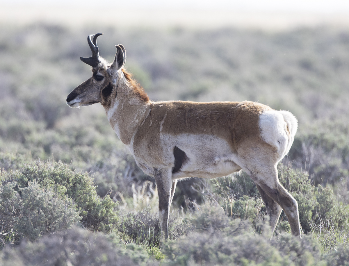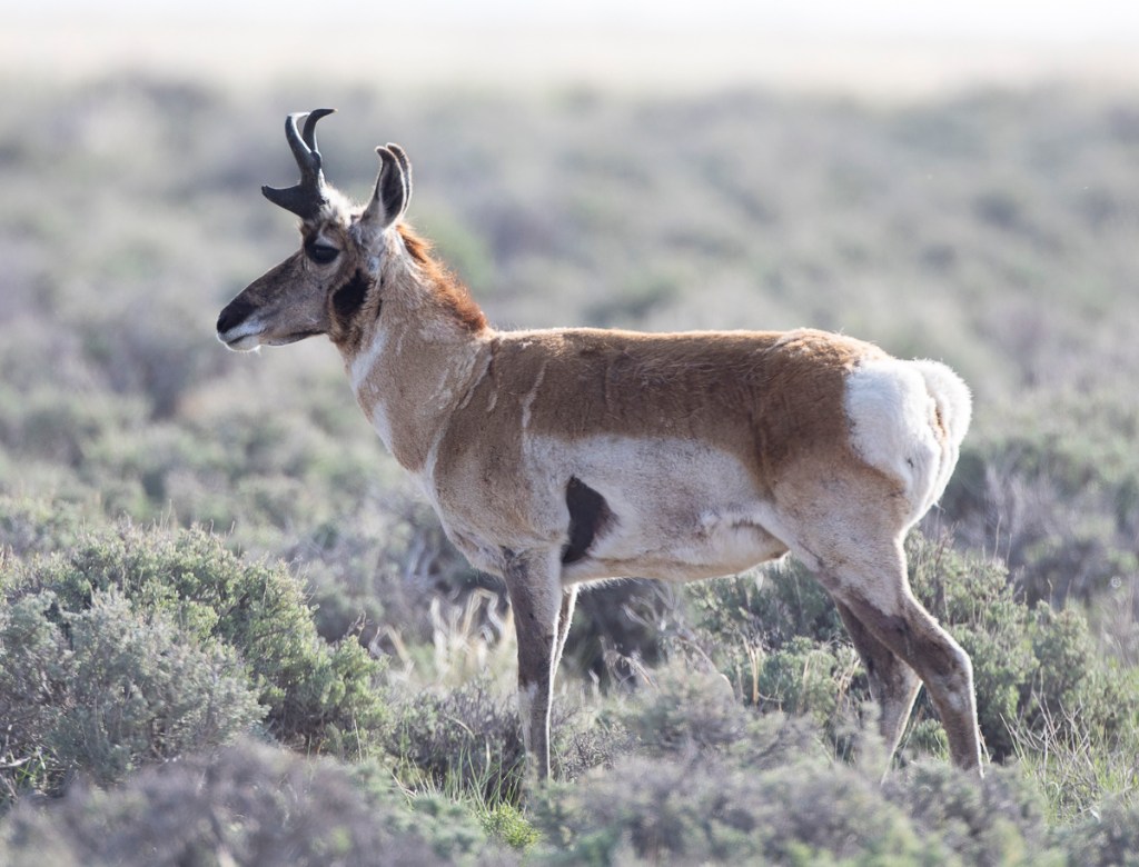 -A stop at the amazing visitor center and a productive chat with the helpful refuge manager set us up to expect some of our first western megafauna of the trip including this Pronghorn buck. Unusually deep snow and frigid temperatures this past winter and early spring had killed many animals, especially the Pronghorn. We also saw a dead Porcupine in a tree when we first drove into the refuge. A big surprise was the number of Moose that called this refuge home.