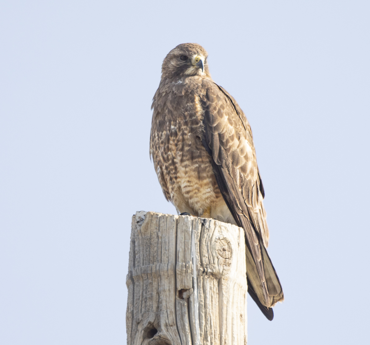-We drove back through the refuge after leaving the campground in hopes of seeing Moose. No luck on that, but we did see lots of birds, like this Swainson’s Hawk, one of many we saw on our trip.