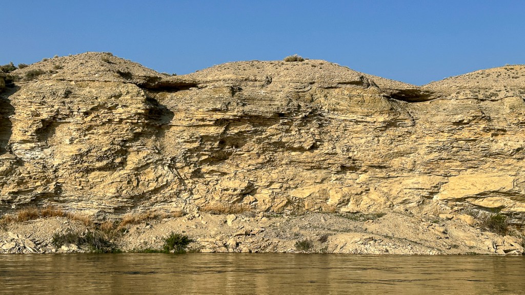 -A smattering of Cliff Swallow nests on the cliff across the river from our campsite